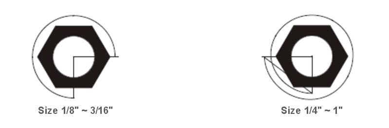 an additional 3/4 turn for sizes 1/8" through 3/16" and 1-1/4 turn for sizes 1/4" through 1".